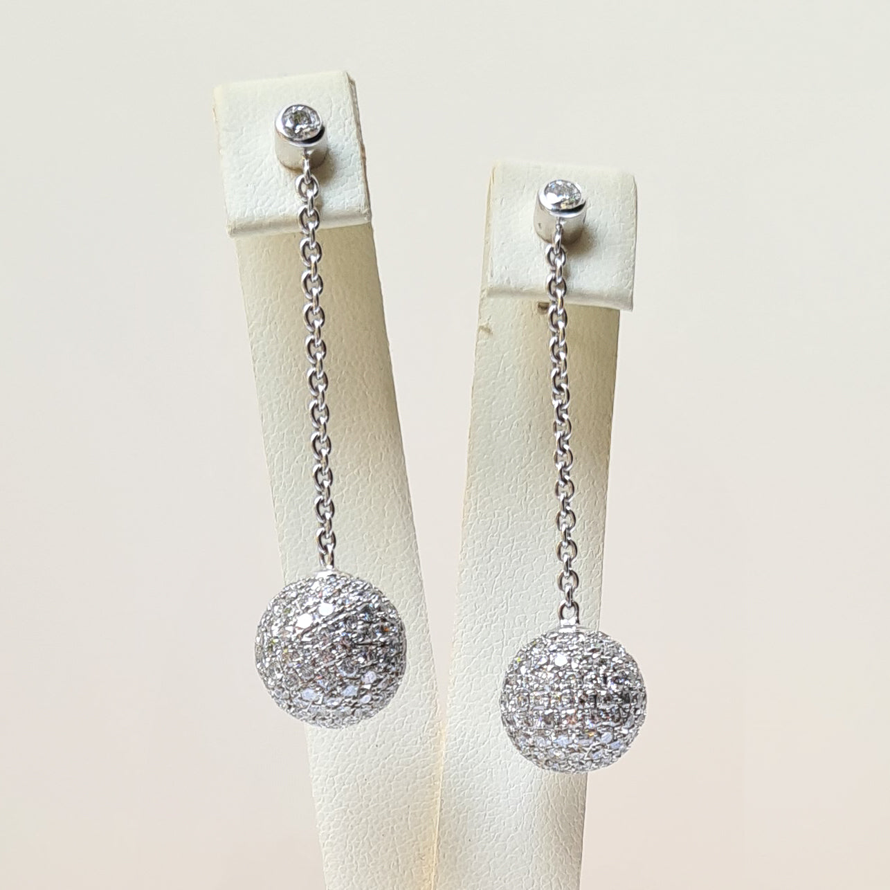 Fun and funky Diamond "glitterball" drop Earrings in eighteen-carat white gold.